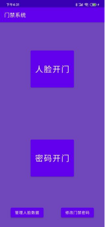 首页包含人脸开门、密码开门、管理人脸数据和修改门禁密码功能。