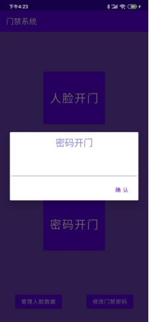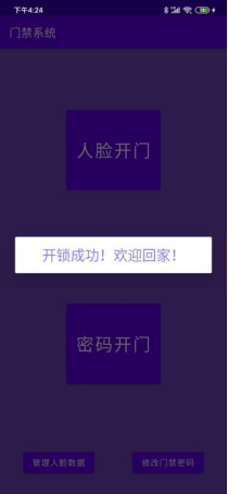 密码开门功能会弹出窗口,用户需输入密码与数据库中的门禁密码进行对比,若一致,则开门,弹出”开锁成功!欢迎回家!”的提示;若不一致,则提示密码错误。